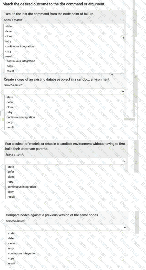Match the desired outcome to the dbt command or argument.