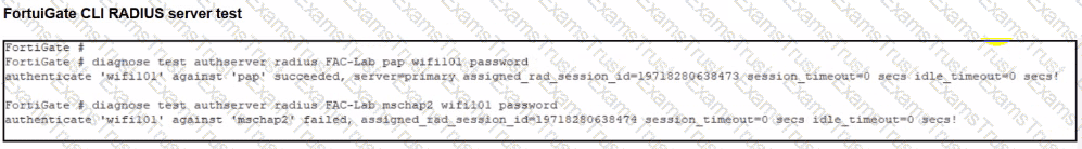 While testing authentication on FortiGate using the command diagnose test authserver radius, it was observed that authentication succeeds with PAP but fails with MSCHAPv2.