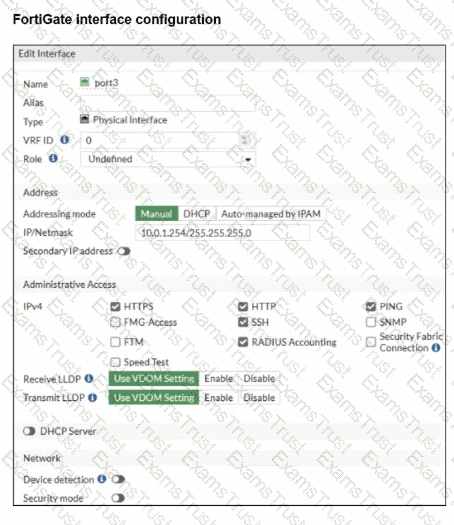 Which three critical configurations must you implement on the FortiGate device? (Choose three.)