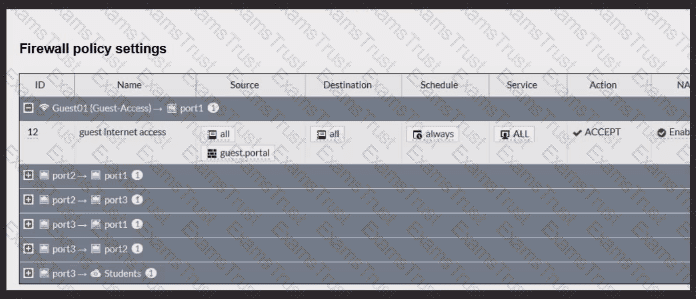 Review the exhibits to analyze the network topology, SSID settings, and firewall policies.
