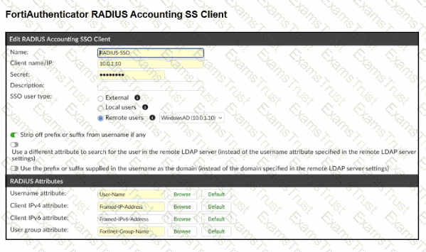 Examine the FortiGate RSSO configuration shown in the exhibit.