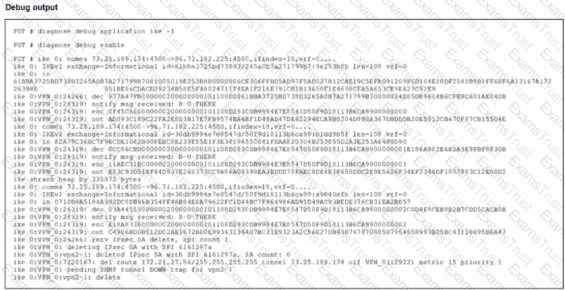 An IPsec VPN tunnel is dropping, as shown by the debug output.