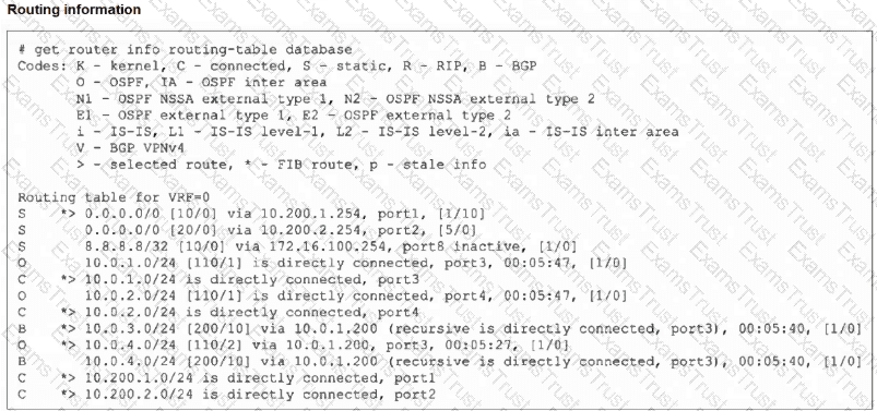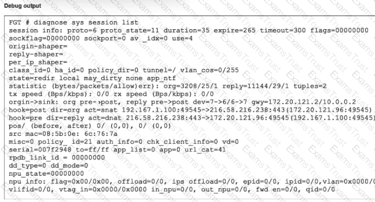Refer to the exhibits, which show the configuration on FortiGate and partial internet session information from a user on the internal network.
