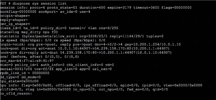 Refer to the exhibit, which shows the output of diagnose sys session list.