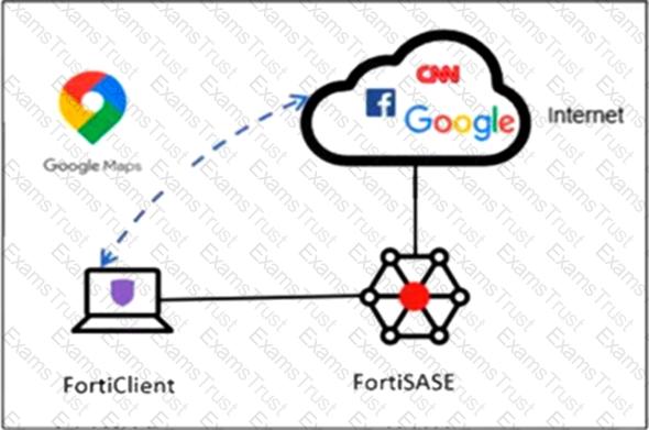 An organization must inspect all the endpoint internet traffic on FortiSASE, and exclude Google Maps traffic from the FortiSASE VPN tunnel and redirect it to the endpoint physical interface.