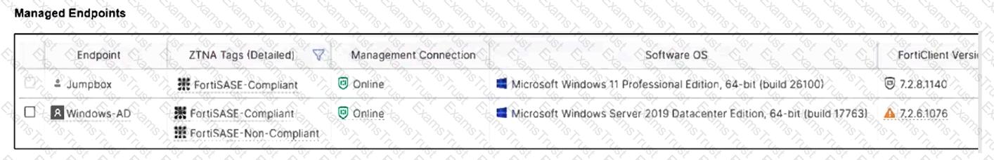 Jumpbox and Windows-AD are endpoints from the same remote location. Jumpbox can access the internet through FortiSASE, while Windows-AD can no longer access the internet.