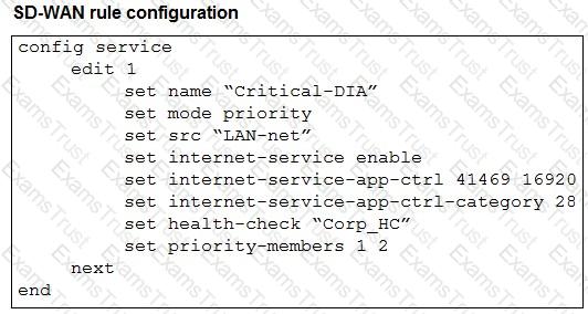 Refer to the exhibit, which shows the SD-WAN rule status and configuration.