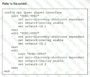 You update the spokes configuration of an existing auto-discovery VPN (ADVPN) topology by adding the parameters shown in the exhibit.