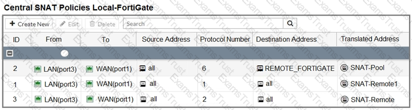 Which IP address will be used to source NAT the traffic, if the user on Local-Client (10.0. 1. 10) pings the IP address of Remote-FortiGate (10.200.3. 1)?