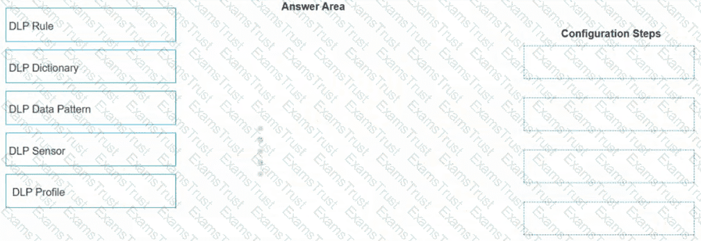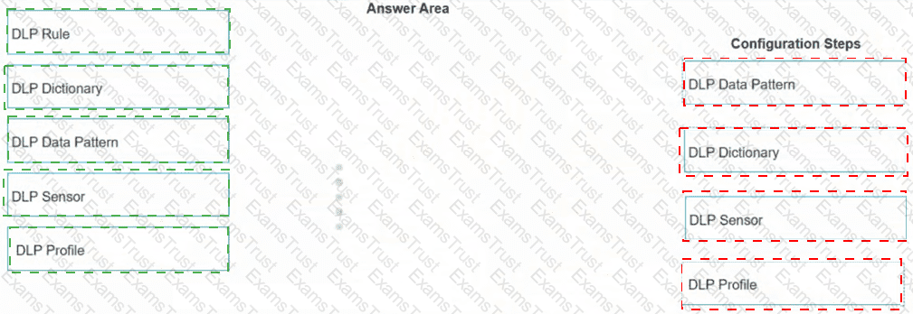 When configuring the DLP rule in FortiSASE using Regex format, what would be the correct order for the configuration steps? (Place the four correct steps in order)