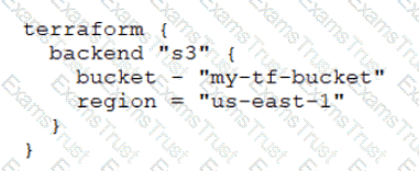 You decide to move a Terraform state file to Amazon S3 from another location. You write the code below into a file called backend.tf.