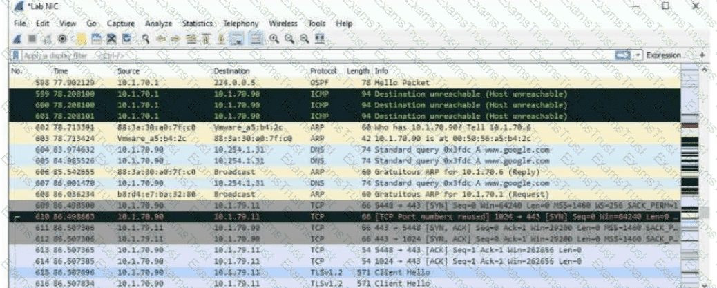 You have downloaded a packet capture that you generated on HPE Aruba Networking Central. When you open the capture in Wireshark, you see the output shown in the