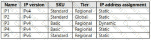 You have an Azure subscription that has the public IP addresses shown in the following table.