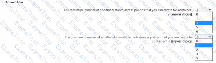 What is the maximum number of additional access policies you can create for cont2? To answer, select the appropriate options in the answer area.