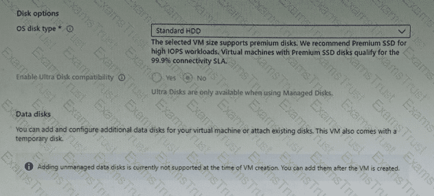 You plan to create an Azure virtual machine named VM1 that will be configured as shown in the following exhibit.