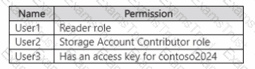 You have an Azure Storage account named contoso2024 that contains the resources shown in the following table.
