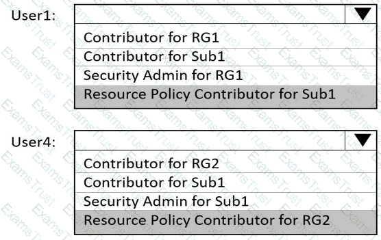 Which role should you assign to each user? To answer, select the appropriate options in the answer area.