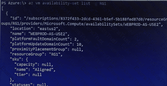 You have an Azure subscription that contains an Azure Availability Set named WEBPROD-AS-USE2 as shown in the following exhibit.