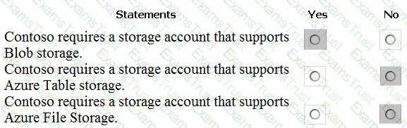 For each of the following statements, select Yes if the statement is true. Otherwise, select No.