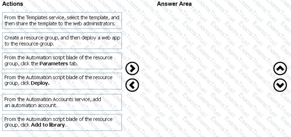 Which three actions should you perform in sequence? To answer, move all actions from the list of actions to the answer area and arrange them in the correct order.