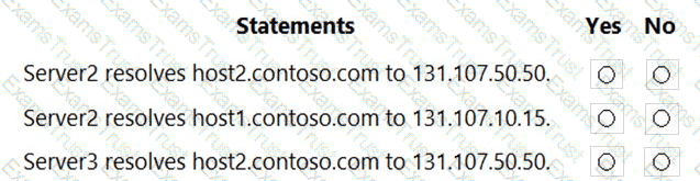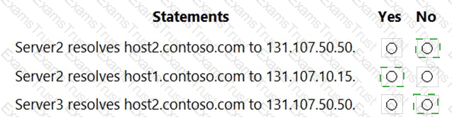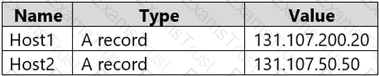 You have an Azure private DNS zone named contoso.com that has a virtual network link to VNET2 and the records shown in the following table.