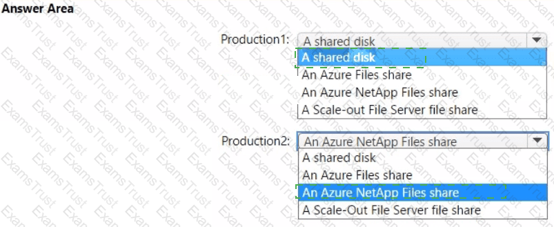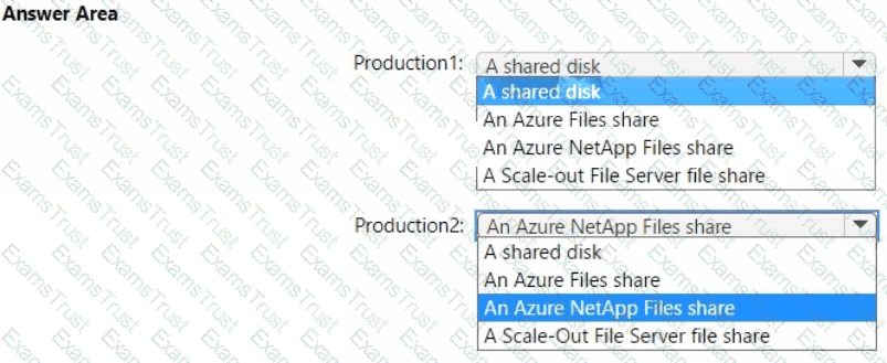 You plan to deploy two SAP NetWeaver landscapes named Production1 and Production2 to Azure. Production! will contain an SAP NetWeaver central services (ASCS/SCS) instance hosted on a Windows failover cluster. Production2 will contain an SAP ASCS/SCS instance hosted on a Linux Pacemaker cluster.