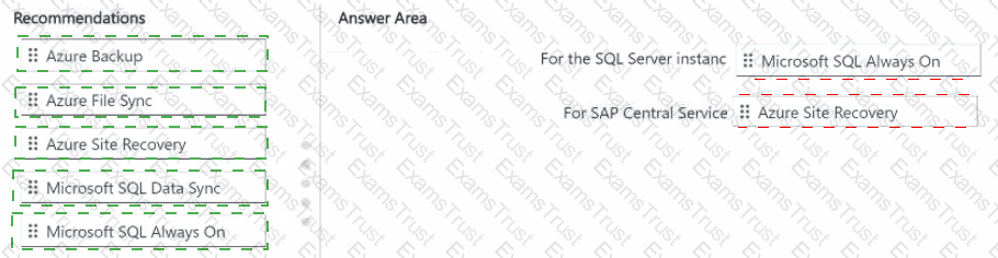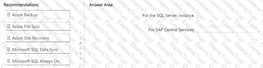 You need to recommend a disaster recovery solution that will enable failover between two Azure regions. The solution must provide the lowest recovery time objective (RTO) for a Microsoft SQL Server instance and SAP Central Services (SCS).