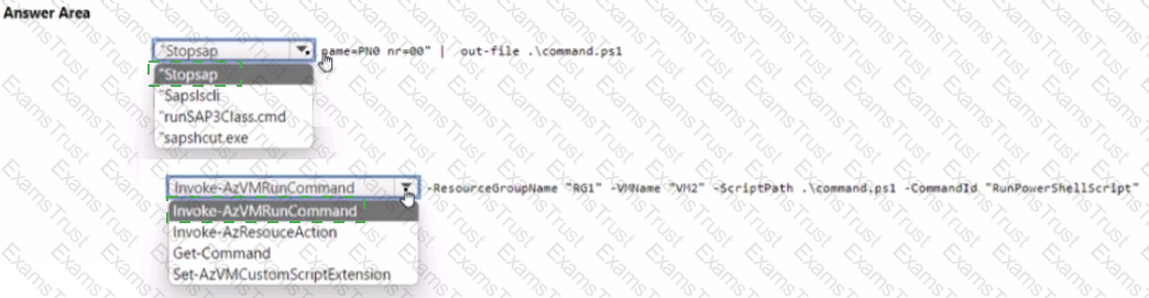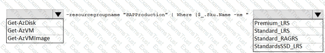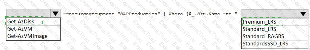 Before putting the SAP environment on Azure into production, which command should you run to ensure that the virtual machine disks meet the business requirements? To answer, select the appropriate options in the answer area.