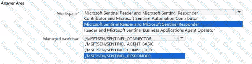 Which roles should you assign to the managed workload and the connector for Workspace1? To answer, select the appropriate options in the answer area.