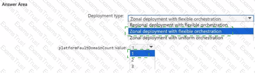 You need to recommend which type of deployment and which platformFaultDomainCount value to use. The solution must maximize the availability of the system.