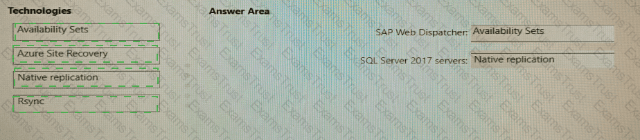 Which fault tolerance technology should you choose for the SAP Web Dispatcher and the Microsoft SQL Server 2017 servers to meet the requirements? To answer, drag the appropriate technologies to The correct targets. Each technology may be used once, more than once, or not at all. You may need to drag the split bar between panes or scroll to view content.