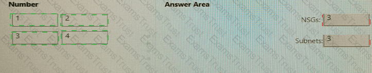 What is the minimum number of network security groups (NSGs) and subnets required? To answer, drag the appropriate number to the correct targets. Each number may be used once, more than once, or not at all. You may need to drag the split bar between panes or scroll to view content.