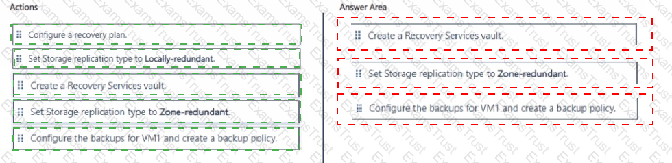 Which three actions should you perform in sequence? To answer, move all actions from the list of actions to the answer area and arrange them in the correct order.