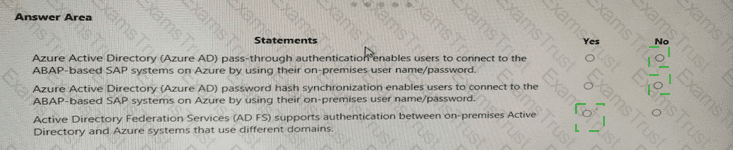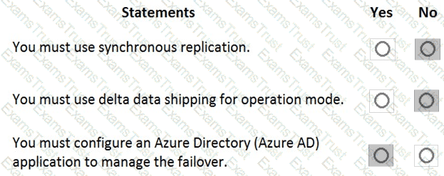 For each of the following statements, select Yes if the statement is true. Otherwise, select No. NOTE: Each correct selection is worth one point.