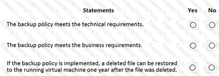 You plan to back up the instances by using Azure Backup.