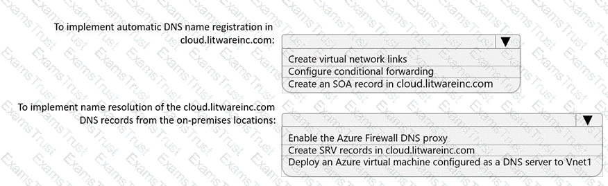 You need to implement name resolution for the cloud.liwareinc.com. The solution must meet the networking requirements.