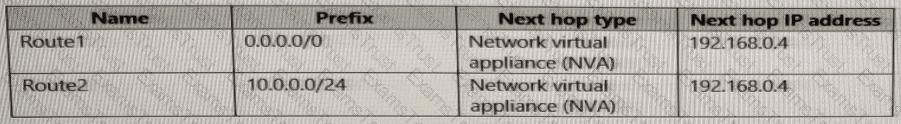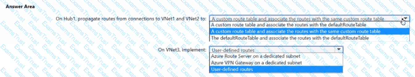 What should you include in a custom route that is linked to Subnet2? To answer, select the appropriate options in the answer area.