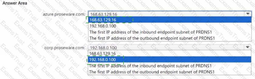 You need to configure the destination IP address for azure.proseware.com and for corp.proseware.com. The solution must meet the general requirements.