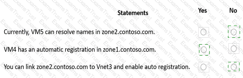 For each of the following statements, select Yes if the statement is true. Otherwise, select No. NOTE: Each correct selection is worth one point.