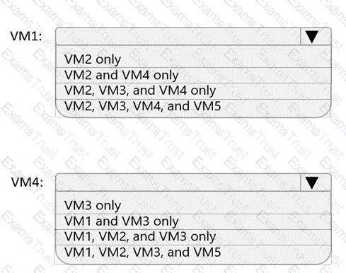 Which virtual machines can VM1 and VM4 ping successfully? To answer, select the appropriate options in the answer area.