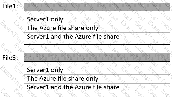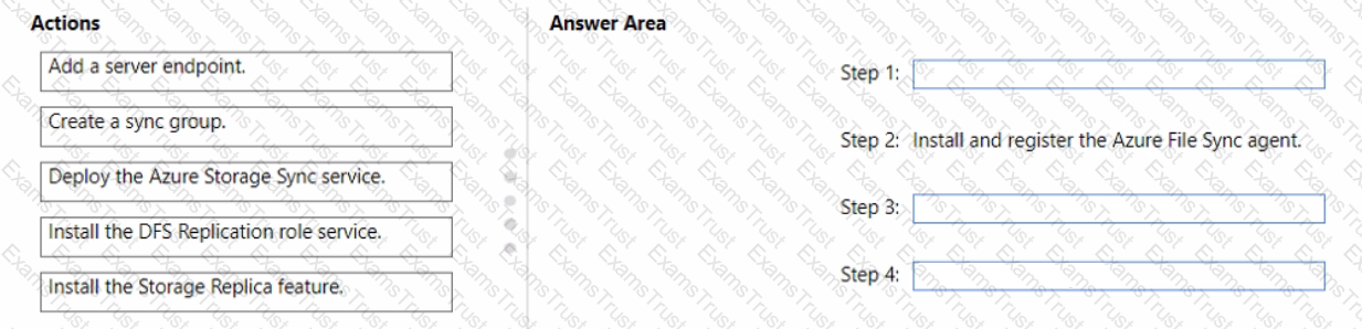 You need to configure Azure File Sync to meet the file sharing requirements. What should you do? To answer, select the appropriate options in the answer area. NOTE Each correct selection is worth one point.