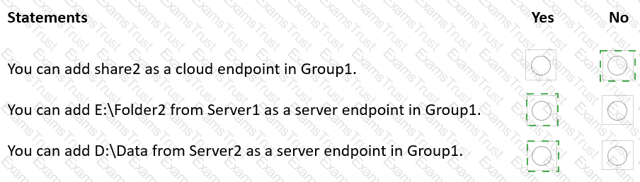 You need to ensure that the Azure file share named share1 can sync to on-premises servers.