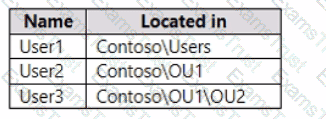 Your network contains an Active Directory Domain Services (AD DS) domain named contoso.com. The domain contains the users shown in the following table.