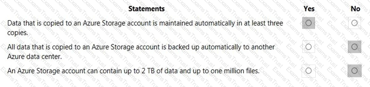 For each of the following statements, select Yes if the statement is true. Otherwise, select No. NOTE: Each correct selection is worth one point.