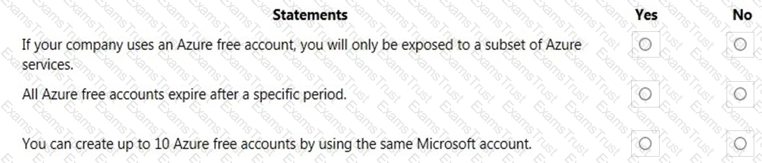 For each of the following statements, select Yes if the statement is true. Otherwise, select No.