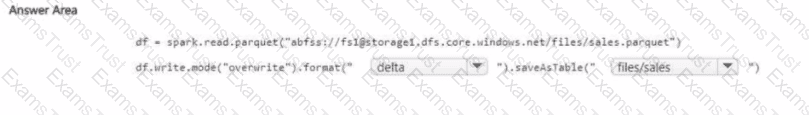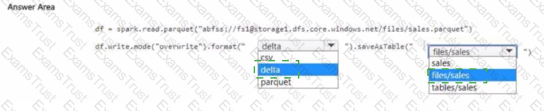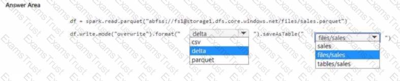 Using a notebook in Workspace1, you need to load the content of the file to the default lakehouse. The solution must ensure that the content will display automatically as a table named Sales in Lakehouse explorer.