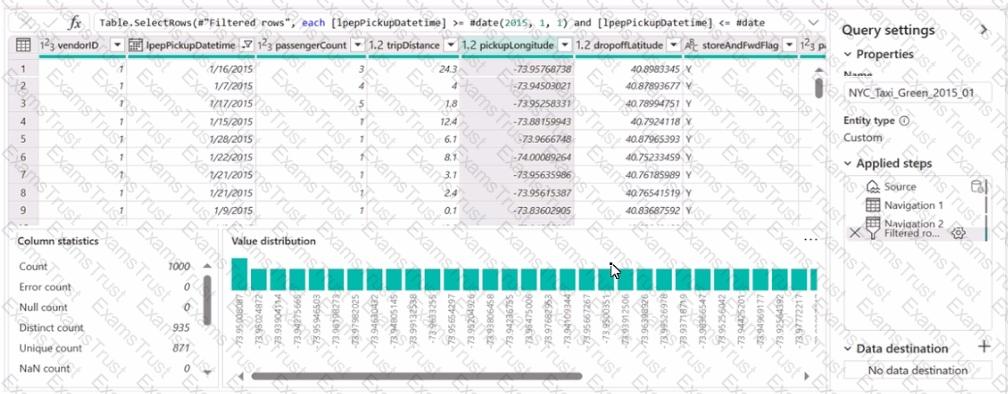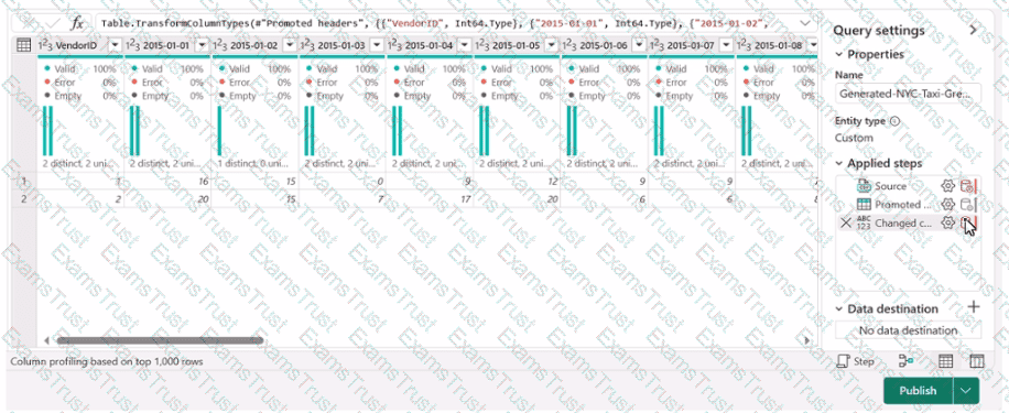 You have a Fabric workspace named Workspace 1 that contains a dataflow named Dataflow1. Dataflow1 has a query that returns 2.000 rows. You view the query in Power Query as shown in the following exhibit.