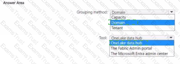 Which two actions should you recommend performing from the Fabric Admin portal? Each correct answer presents part of the solution.