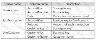 You are the administrator of a Fabric workspace that contains a lakehouse named Lakehouse1. Lakehouse1 contains the following tables: