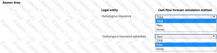 How should you configure cash flow management? To answer, select the appropriate options m the answer area.